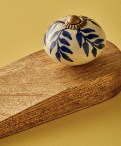 Ürün mango ağacından üretilmiştir. Üründe el yapımı, seramik malzemeden yapılmış dekor bulunmaktadır.